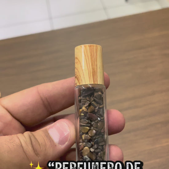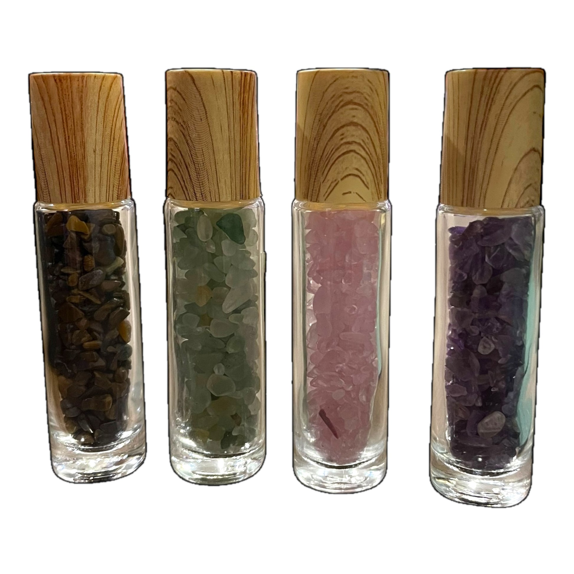 Roll-on mit Quarz zur Reinigung und Energetisierung der ätherischen Quarzöle Ihrer Wahl für 12 ml. Enthält eine mit Quarz gefüllte Flasche, einen Roll-on und eine Kappe.