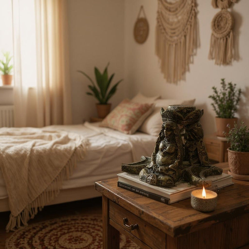 La escultura de la Triple Diosa es una expresión artística única que captura la esencia de la feminidad divina en una representación que invita a la contemplación. Con sus dimensiones compactas de 7 cm en altura, esta pieza de resina es ideal para ubicar en estanterías, mesas de altar o cualquier espacio donde se desee agregar un toque de misticismo. El modelo Triple Diosa Cascada está diseñado con un enfoque en la temática de la triple divinidad, simbolizando el ciclo de la vida y la conexión con la naturaleza. Su acabado en resina le otorga una apariencia elegante y duradera, lo que la convierte en una opción perfecta tanto para coleccionistas como para quienes buscan un adorno especial. A pesar de su ligero peso de 30 g, esta escultura proporciona una presencia significativa en cualquier ambiente. Su diseño equilibrado y atractivo también la convierte en un excelente regalo para aquellos que valoran la espiritualidad y la belleza en el arte. Añade un toque de serenidad y belleza a tu hogar o espacio de trabajo con esta obra única que reflejará tus valores y creencias. La Triple Diosa no solo es una escultura, sino una pieza que te conecta con la esencia de la divinidad femenina.