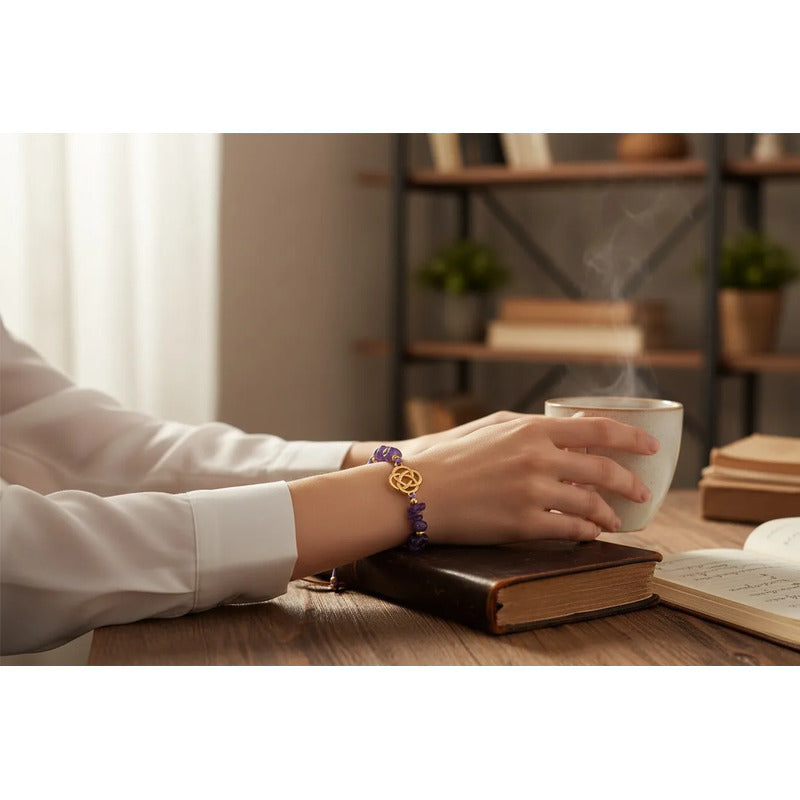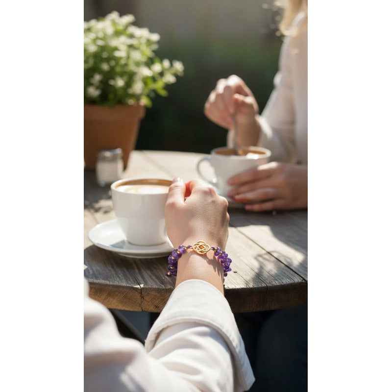 Pulsera De Cuarzo Separaciones De Metal En Hilo Ajustable Circulo Amatista 17 Cm