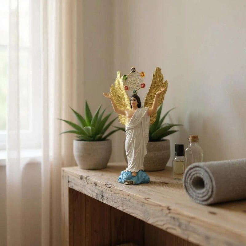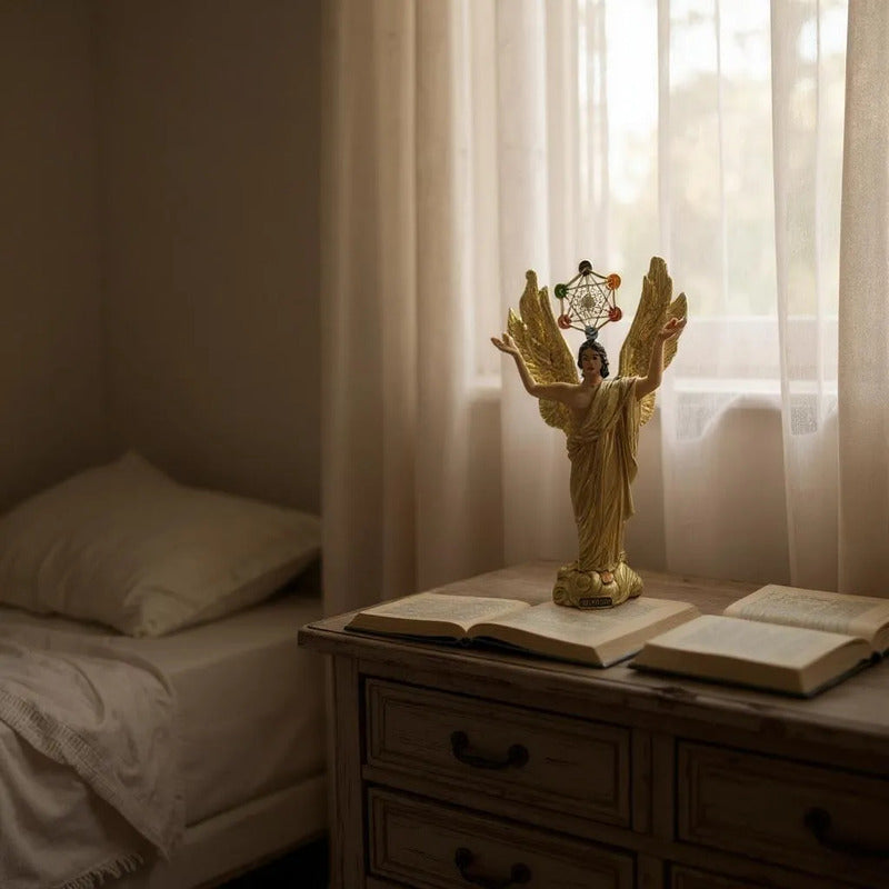 La fruta de la vida (un componente de la Flor de la Vida, un cuerpo de la geometría sagrada)[cita requerida] está compuesto de trece círculos. Si cada círculo se considera un "nodo" y se conecta con el siguiente mediante una única línea recta, resulta un total de setenta y ocho líneas creadas. Así, el Cubo de Metatrón es un cuerpo geométrico directamente obtenido de la "Fruta de la vida"; dentro del cubo se pueden encontrar otros cuerpos, como los dos modelos dimensionales de los cinco sólidos platónicos.[cita requerida] En las primeras escrituras cabalísticas se dice que Metatrón creó este cubo a partir de su propia alma.[cita requerida] Esto se puede ver también en el arte cristiano, donde este aparece sobre su pecho, o flotando detrás de él.[cita requerida] El cubo de Metatrón se considera también un glifo sagrado, y a veces se dibuja alrededor de un objeto o persona para protegerlo de los demonios y los poderes satánicos.[cita requerida] Esta idea también aparece en la alquimia, en la que el círculo fue considerado un círculo de contención o un círculo de la creación.