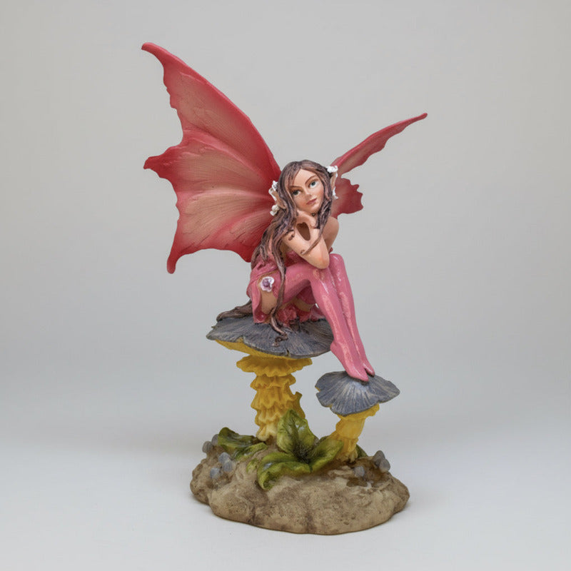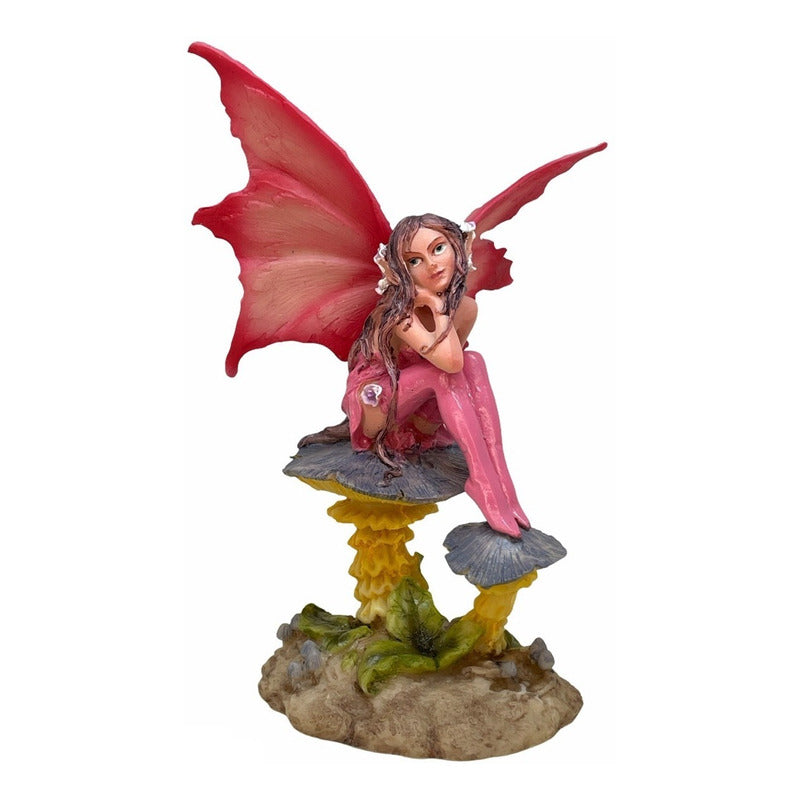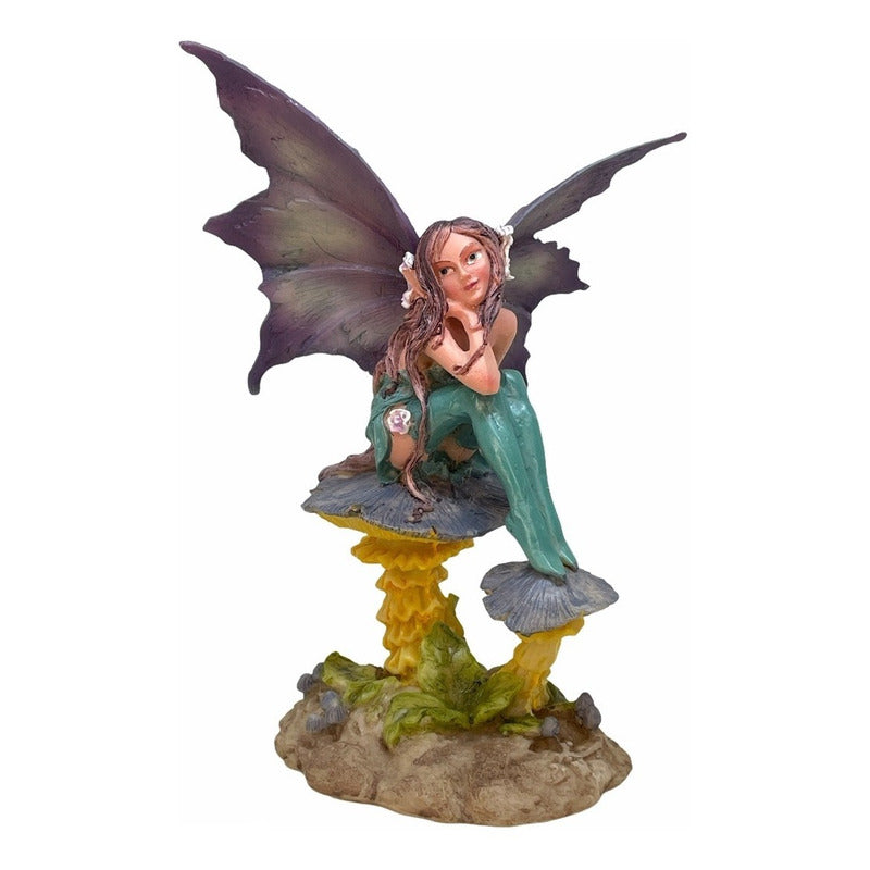 Hada Sentada En Hongo 16 Cm Resina Mexicana