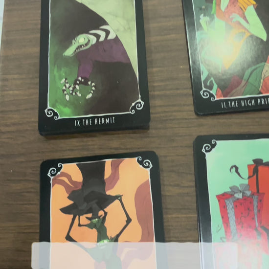 Este mazo de tarot está inspirado en "El Extraño Mundo de Jack", combinando la estética gótica y encantadora de la película con los símbolos tradicionales del tarot. Cada carta presenta ilustraciones detalladas que capturan la esencia oscura y mágica del universo de Jack Skellington, ofreciendo una experiencia única para quienes buscan lecturas profundas con un toque artístico exclusivo. Perfecto para coleccionistas y practicantes que aprecian la fusión entre arte y adivinación.