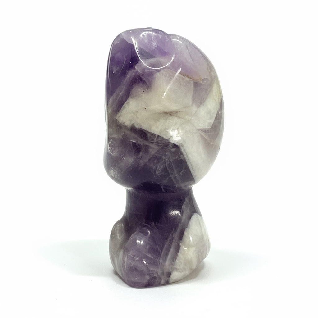 Esta delicada figura de cuarzo, meticulosamente tallada en forma de gato, mide 4.5 x 2.5 x 2 cm. Su tamaño compacto y acabado preciso resaltan la belleza natural del cuarzo, convirtiéndola en un objeto ideal para coleccionistas y amantes de las piedras preciosas, aportando un toque de elegancia y energía positiva a cualquier espacio.