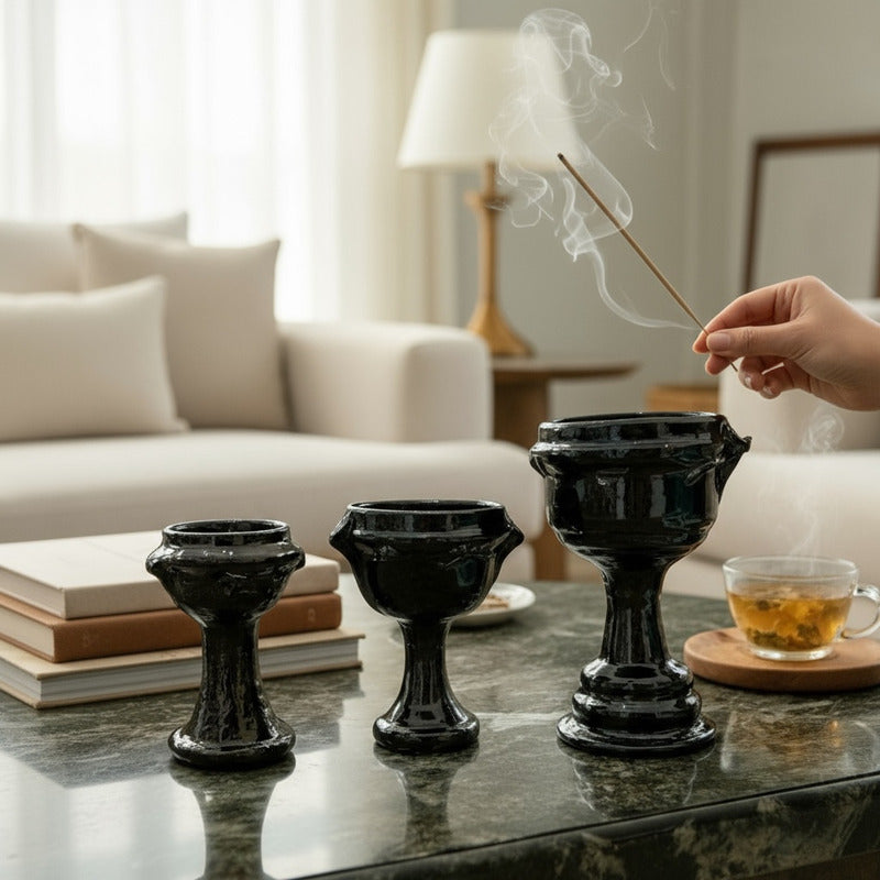 Sahumerio Copalera Porta Incienso Barro Vidriado 20x12x15 Cm Negro Lisa