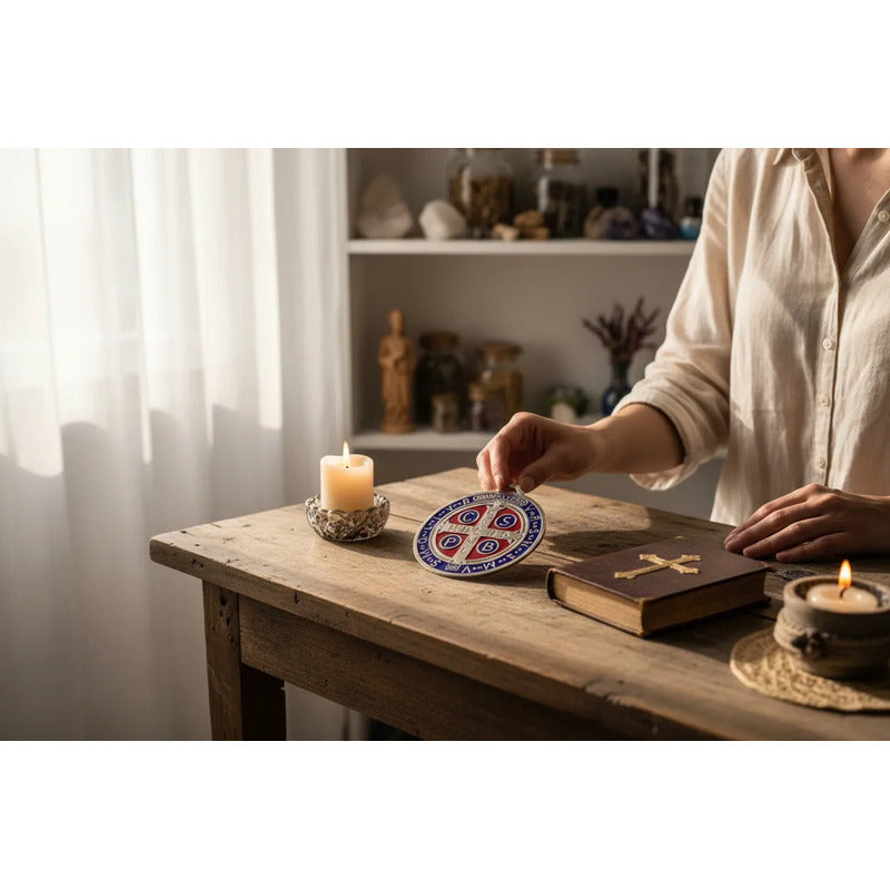 La medalla San Benito de HEREJE es una pieza única que combina devoción y estilo. Con un diámetro de 12 cm y una altura de 13 cm, esta medalla está elaborada en metal con un acabado metálico que resalta su diseño religioso. Disponible en dos colores vibrantes, rojo y azul, se adapta a diferentes gustos y preferencias. Este accesorio no solo es un símbolo de fe, sino también un elemento decorativo que puede realzar cualquier espacio. Su diseño meticuloso y su tamaño adecuado la convierten en una opción ideal para llevar en el cuello o exhibir en un altar. La medalla San Benito es perfecta para quienes buscan un objeto que represente su espiritualidad y estilo personal. Su material duradero asegura que se mantenga en excelentes condiciones a lo largo del tiempo, convirtiéndola en una inversión significativa para quienes valoran la tradición y la estética.