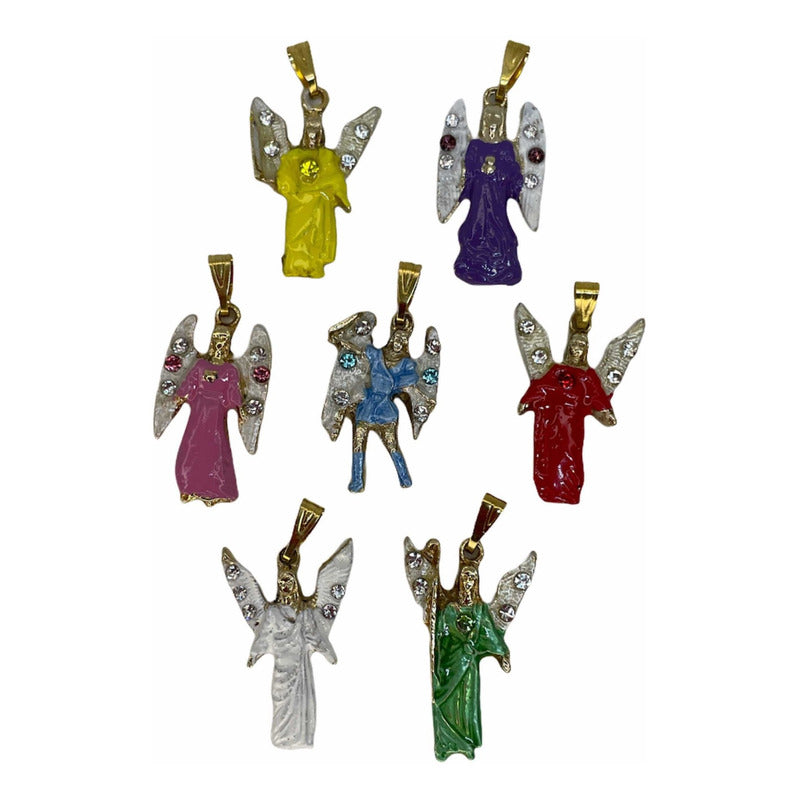 Juego 7 Arcangeles Dije Baño De Oro Con Cristal Miguel Jofie