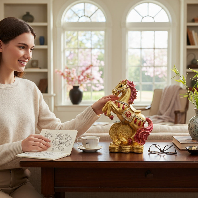 Caballo Año Chino Estatua De Resina 18x13x8.5 Cm