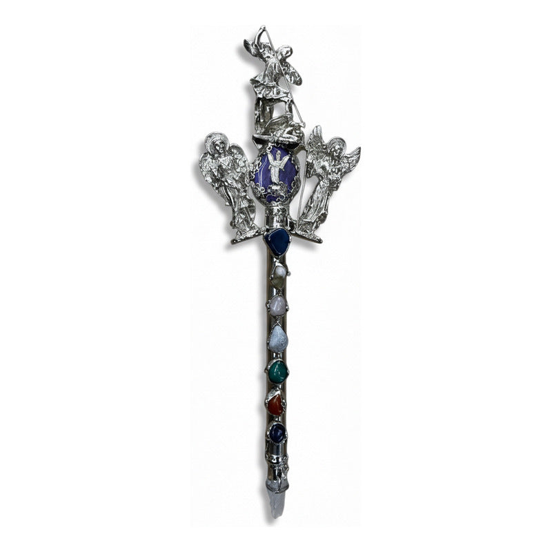 Vara De Poder Arcangeles Con Cuarzo Niquelado 33cm Estimado Agata Morada