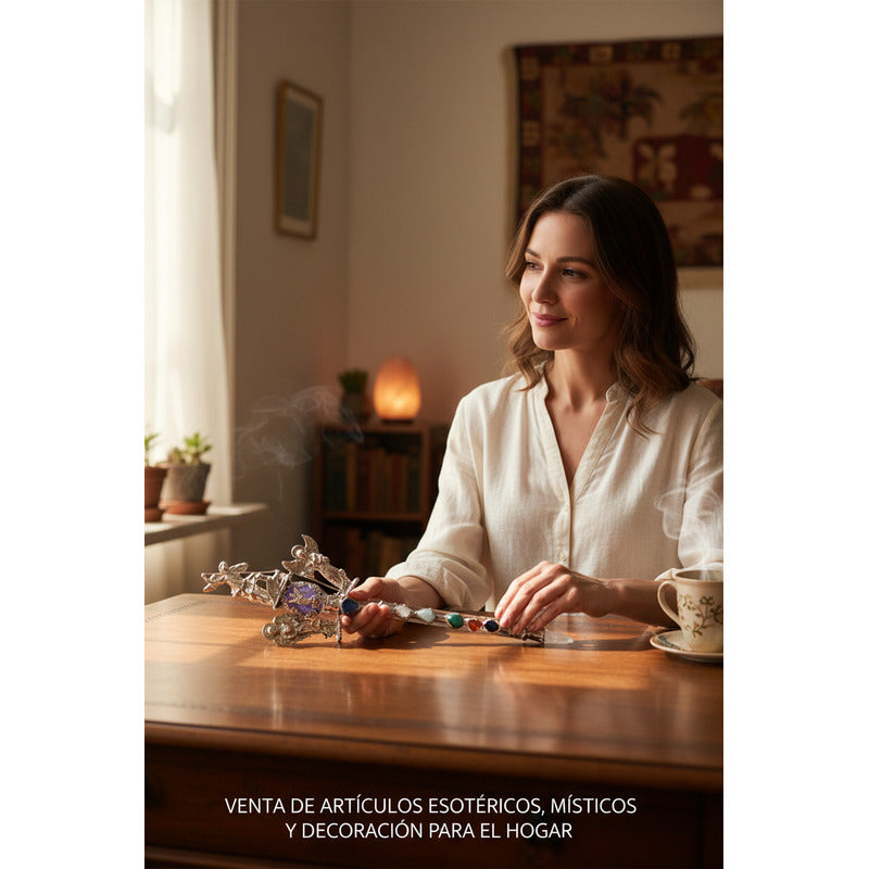 La Vara de Poder Arcángeles con Cuarzo Niquelado es una herramienta esencial para quienes buscan conectar con energías superiores y potenciar su bienestar espiritual. Con una longitud de 30 cm, esta vara está diseñada para facilitar la meditación, la sanación y la canalización de energías positivas. El cuarzo, conocido por sus propiedades amplificadoras, se combina con un acabado niquelado que no solo aporta un toque estético, sino que también mejora la durabilidad del producto. Ideal para practicantes de reiki, terapeutas holísticos y cualquier persona interesada en el crecimiento personal y espiritual. Su diseño ergonómico permite un manejo cómodo, lo que la convierte en una excelente opción para sesiones prolongadas. Al incorporar esta vara en tu práctica diaria, podrás experimentar una mayor claridad mental y una conexión más profunda con tu ser interior. La Vara de Poder Arcángeles es más que un simple objeto; es un aliado en tu camino hacia la armonía y el equilibrio. Permite que su energía te guíe y transforma tu espacio en un santuario de paz y bienestar.